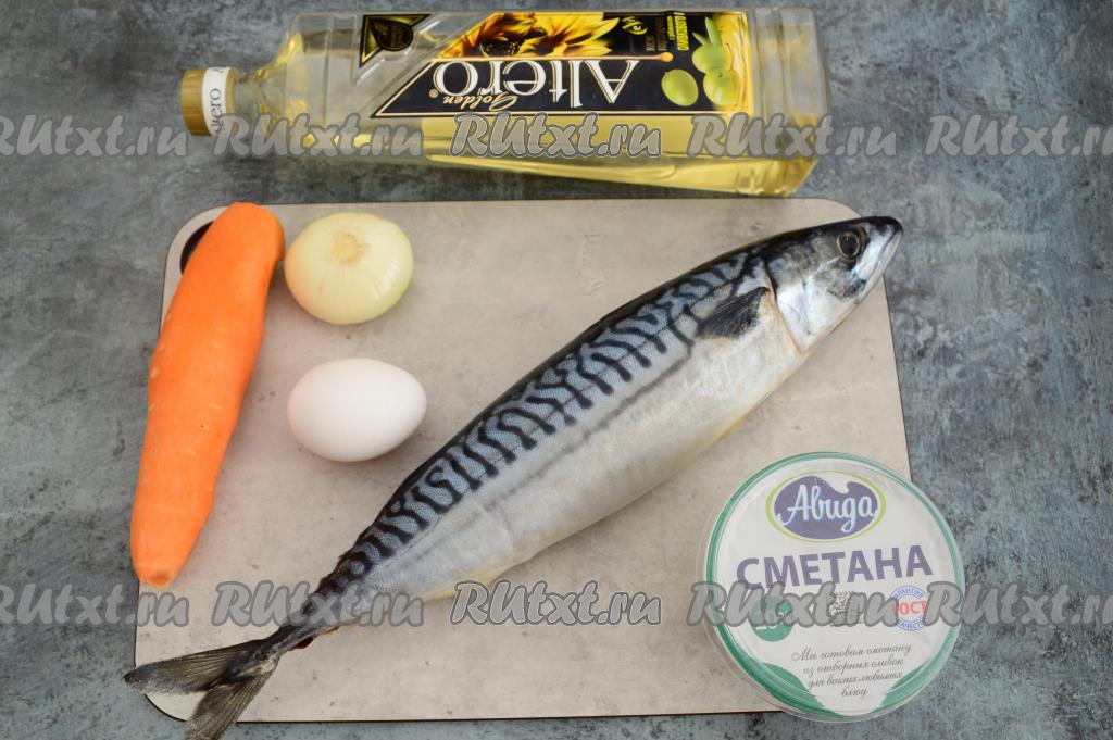 Подготовить продукты. Морковку и лук очистить. Замороженную скумбрию нужно полностью разморозить. Сварить вкрутую яйцо (варить с момента закипания воды 10 минут), остудить его и очистить.