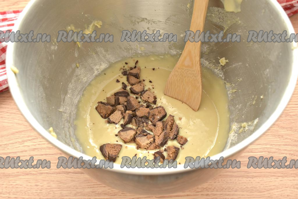 Перемешиваем тесто с шоколадом лопаткой (или ложкой).