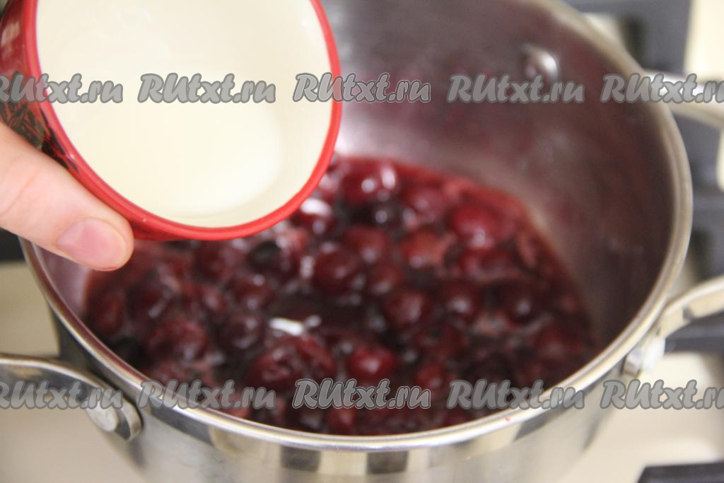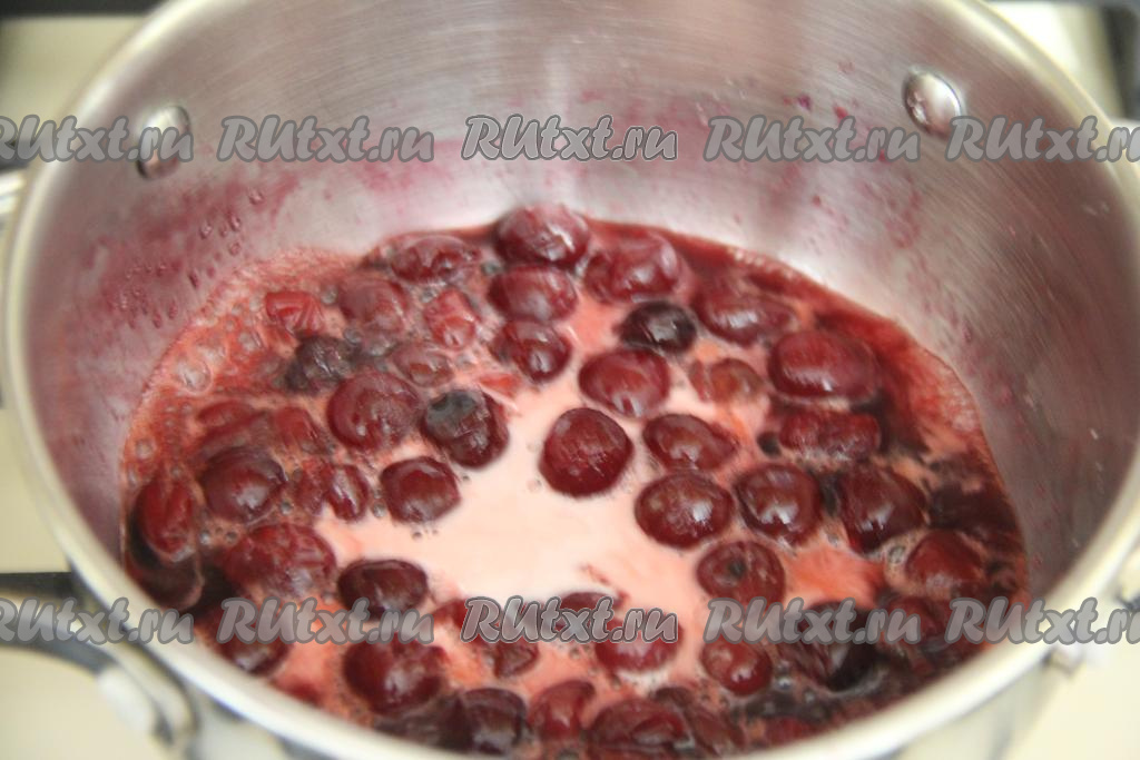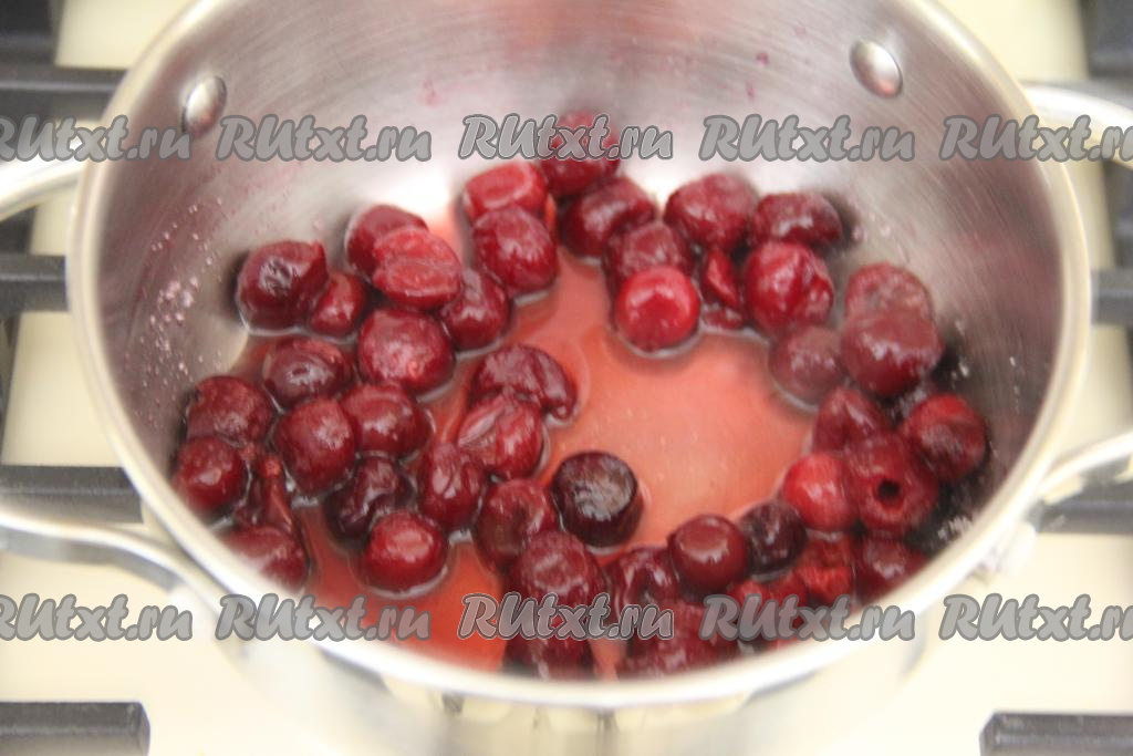В сотейник выложить слегка размороженную (или свежую) вишню, добавить 50 грамм сахара, перемешать и поставить на небольшой огонь.