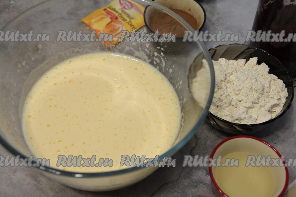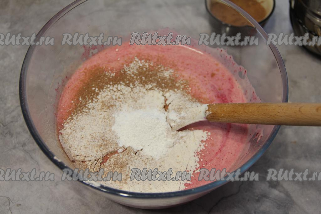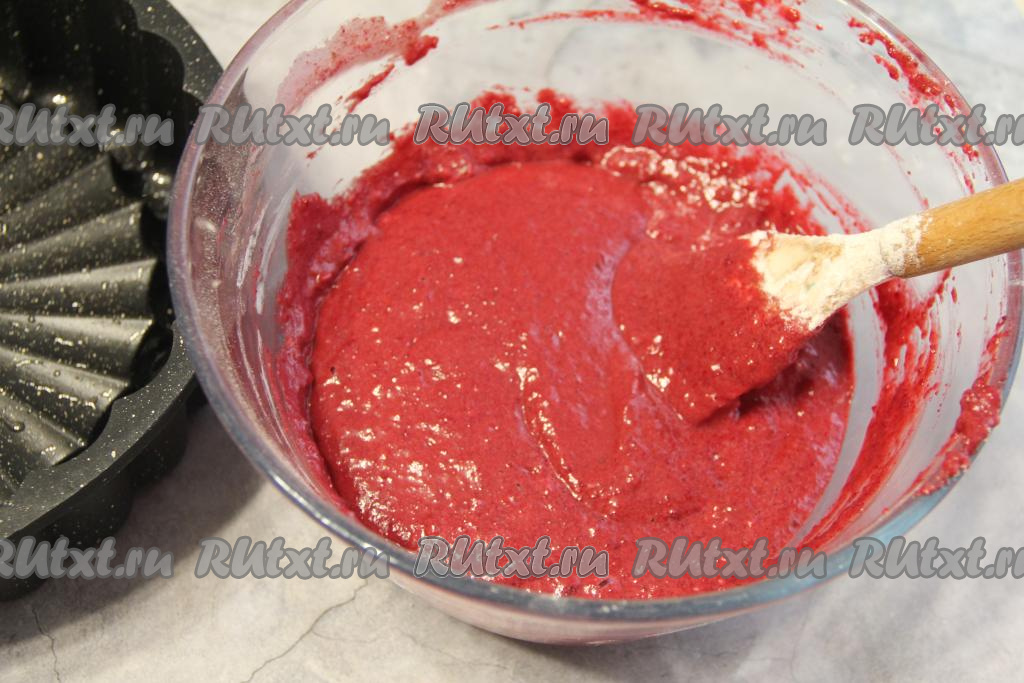 Добавляя муку, учитывайте, что тесто для свекольного кекса должно получиться воздушным, в меру густым, по консистенции будет напоминать сметану средней густоты.
