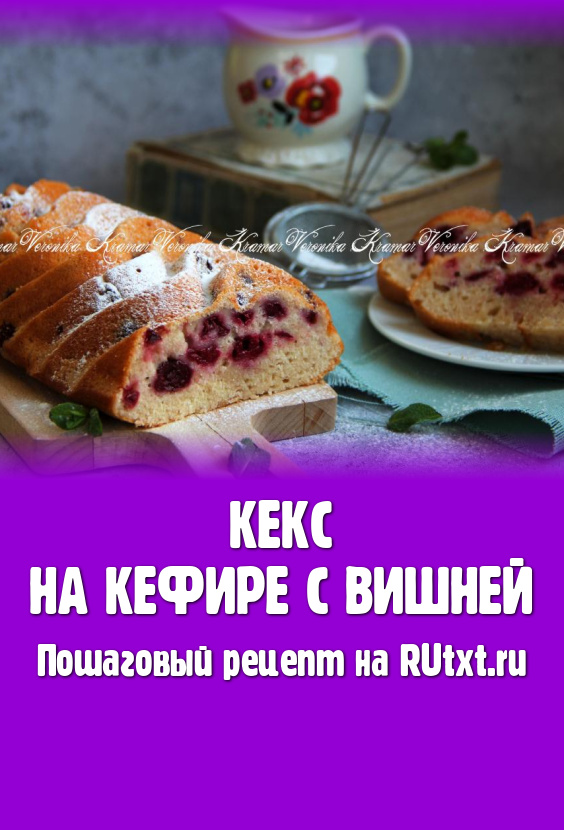 Нежный кекс с вишней нарезать на кусочки и подать к чаю. Благодаря тому, что тесто замешивается на кефире, выпечка получается мелкопористой, в меру влажной, вкусной. Такой кекс с ягодами отлично дополнит семейное чаепитие!