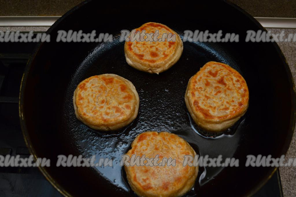 Затем перевернуть сырники с помощью лопатки и жарить 2 минуты с другой стороны (до подрумянивания). После этого их нужно ещё раз перевернуть, выключить огонь, накрыть крышкой и дать сырникам дойти под крышкой в течение 5-7 минут.