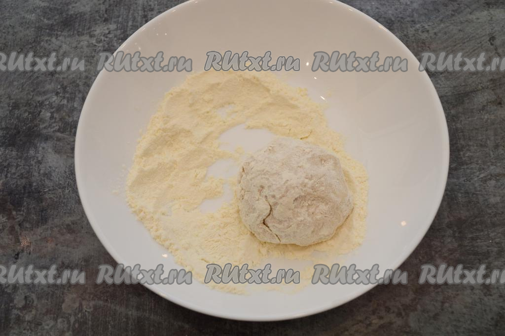 В отдельную тарелку насыпать 1 столовую ложку муки. Зрительно разделить творожную массу на равные части (я разделила на 4 части - именно столько сырников и получится). Влажными руками взять одну часть творожной массы, сформировать сырник и обвалять его со всех сторон в муке.