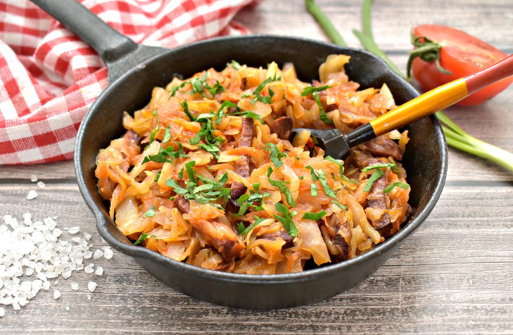 Тушёная капуста - вкусное и сытное блюдо, которое можно приготовить с добавлением различных ингредиентов. Обычно я тушу капусту с мясом, курицей или грибами, но в этот раз сделала её с копчёной колбасой. Капуста, тушёная с копчёной колбасой, получилась сочной, аппетитной и сытной. К столу это простое и вкусное блюдо можно подать в качестве основного или дополнить гарниром из картошки.