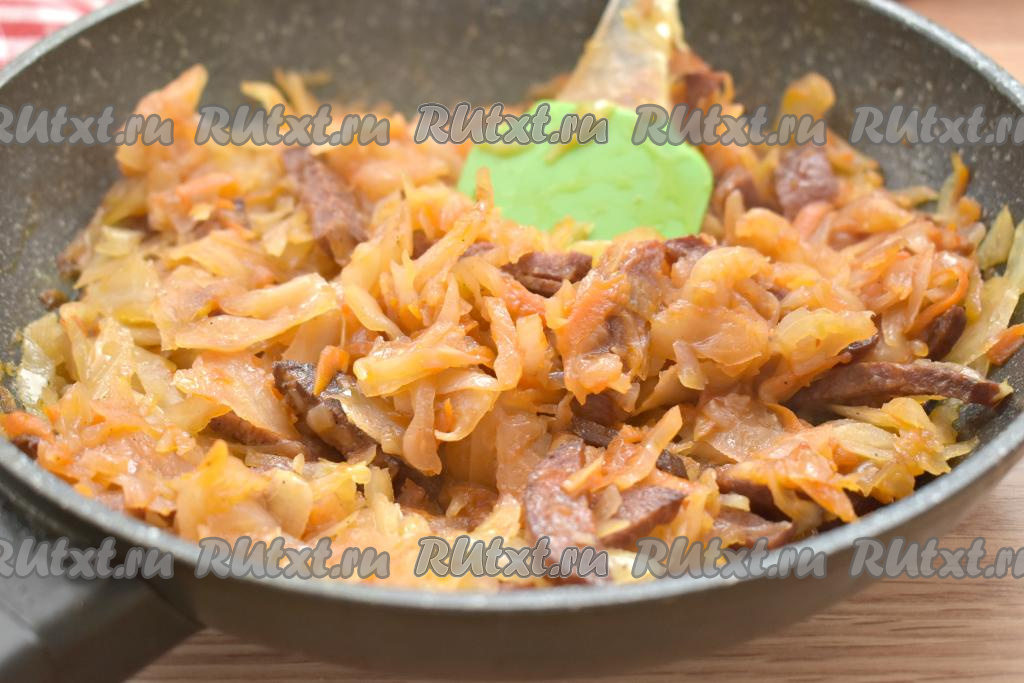 Перемешиваем, продолжаем тушить капусту под крышкой ещё 5-7 минут.