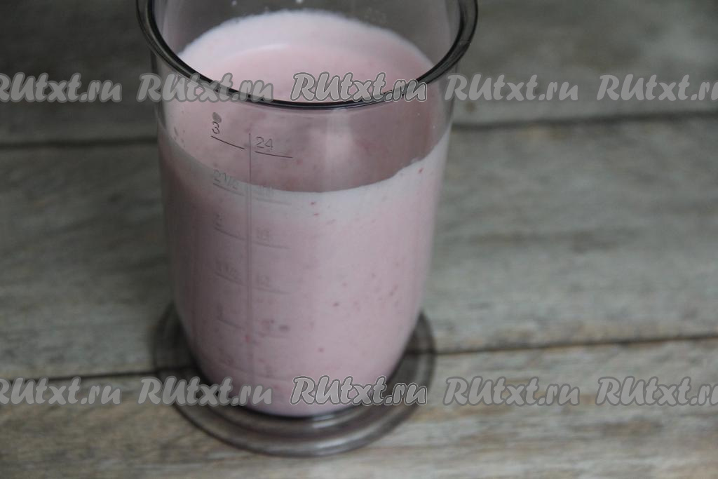 Пробить молоко с клубникой погружным блендером до однородного состояния.