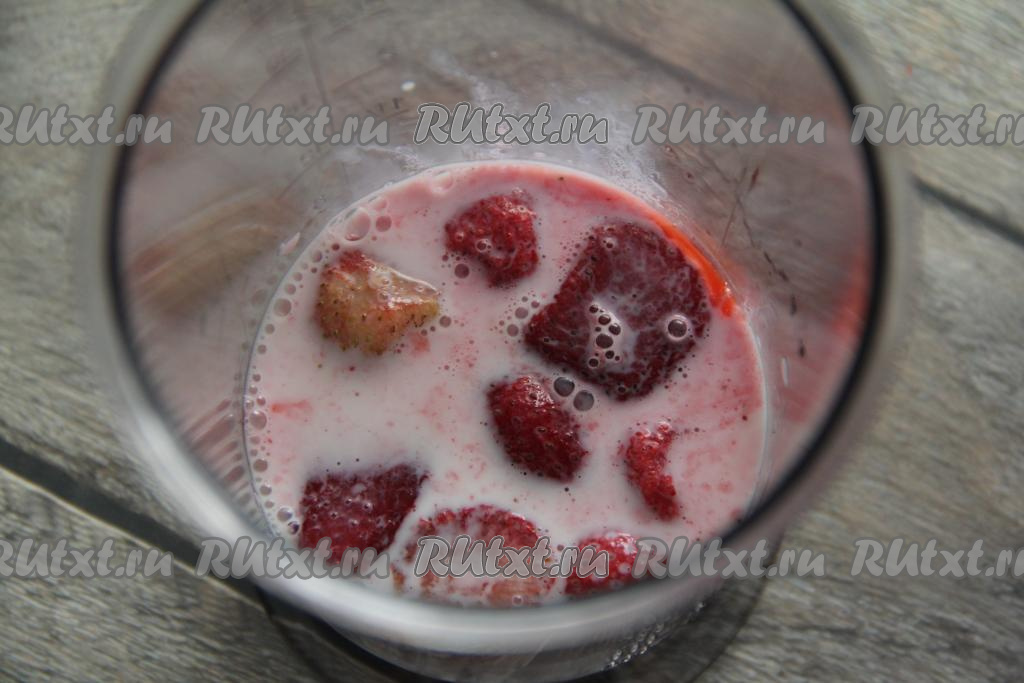 Молочно-клубничный коктейль получается достаточно густым, его можно даже кушать ложкой.