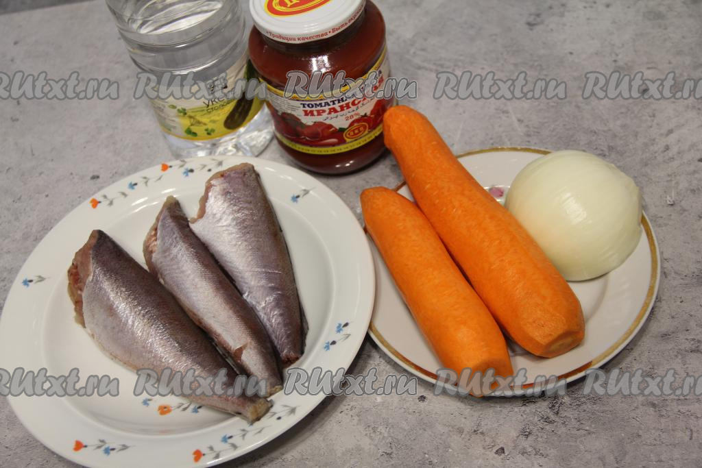 Подготовить продукты. Рыбу разморозить. Если хек не потрошёный, тогда удалить голову и внутренности, промыть водой. У меня получилось 600 грамм потрошёного хека. Морковь и лук почистить.