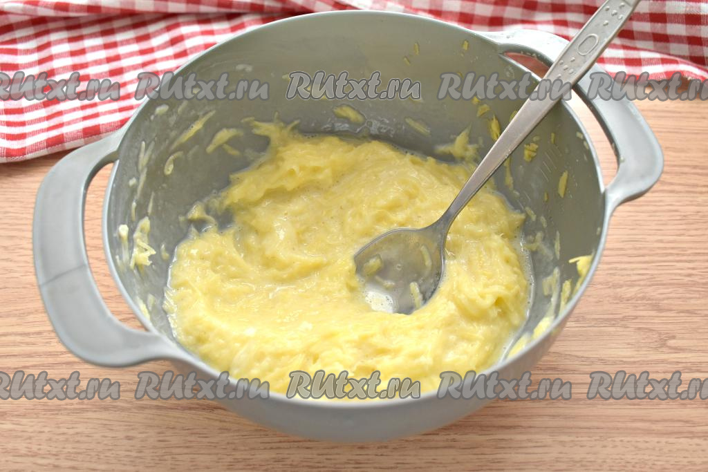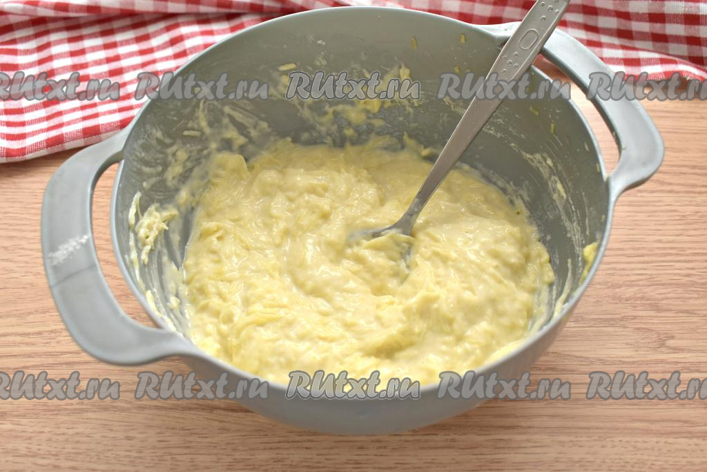 Тщательно перемешиваем картофельную массу, она получится не очень густой.