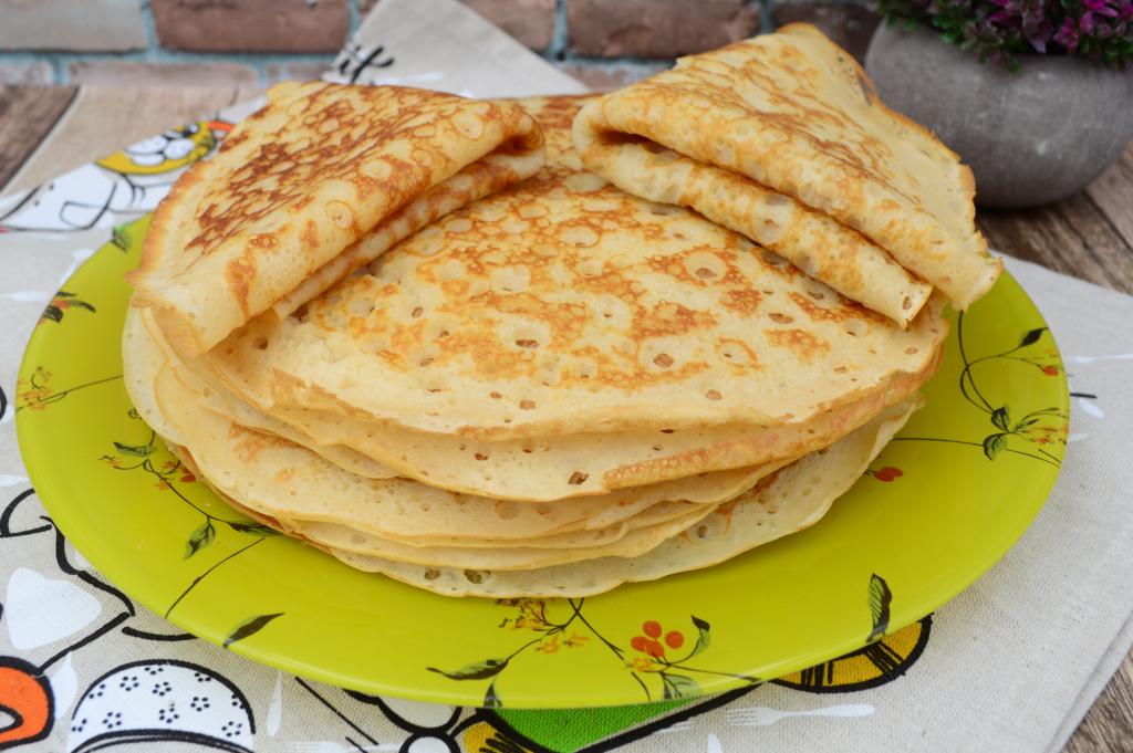 Заварные блины на кефире и молоке с дырочками