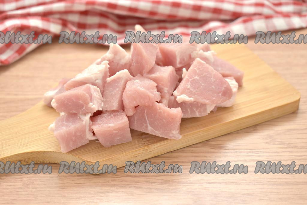 Моем мякоть свинины, обсушиваем и нарезаем на небольшие кусочки.