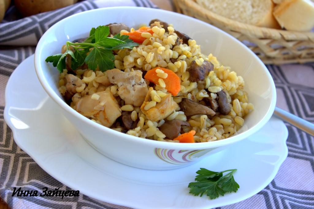 Аппетитный булгур с сочными кусочками курицы и грибами разложить со сковороды по тарелкам и подать в горячем виде к столу. Это простое блюдо отлично насытит и порадует отменным вкусом!