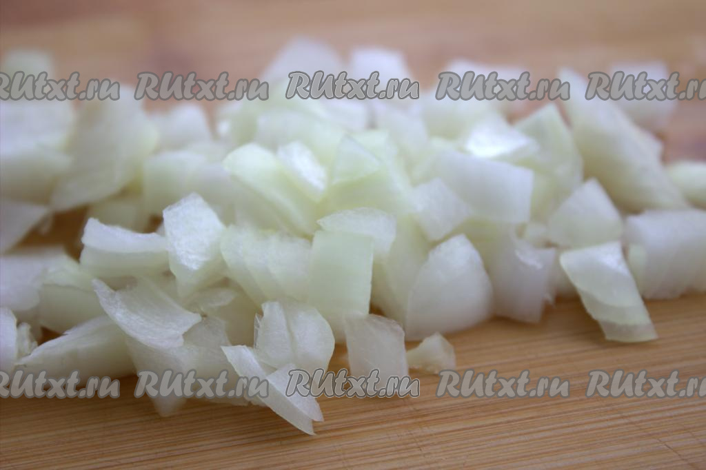 Мелко нарезать очищенный лук.