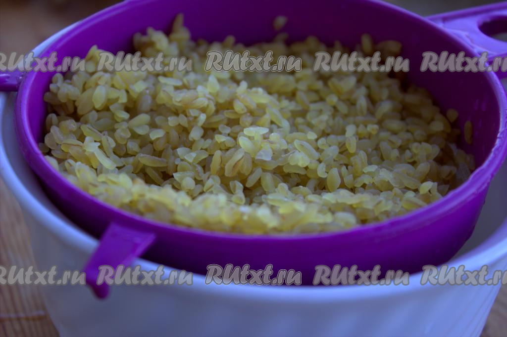 Булгур промыть под проточной водой несколько раз. Откинуть булгур на сито, чтобы с крупы стекла лишняя вода.