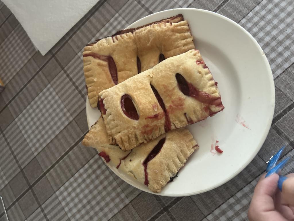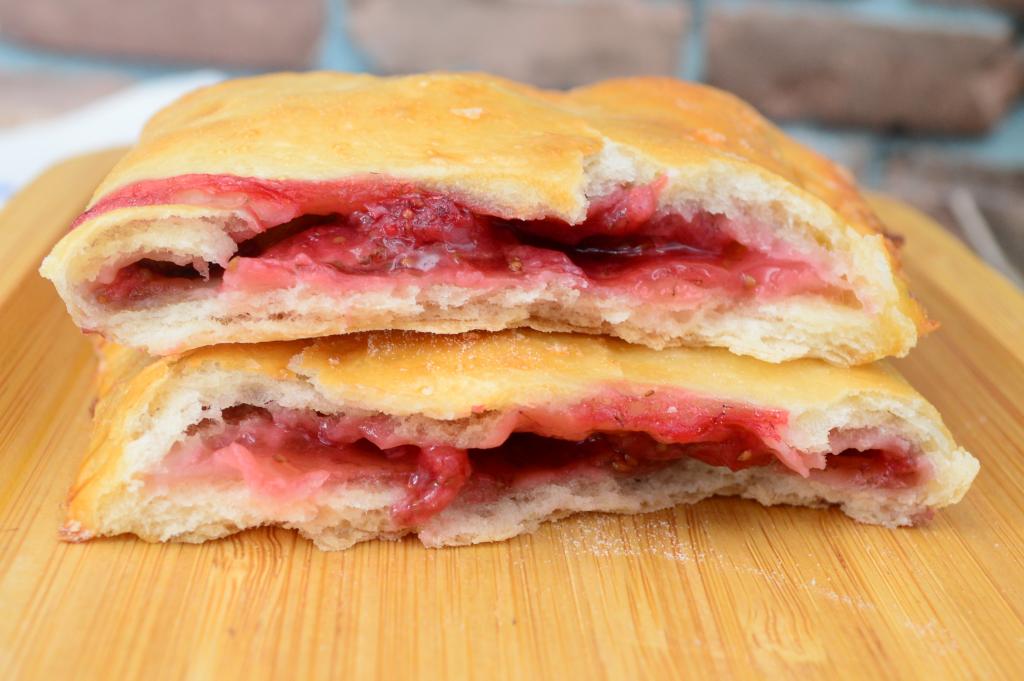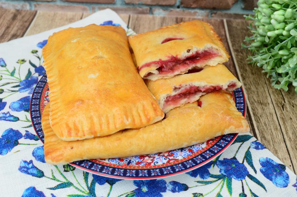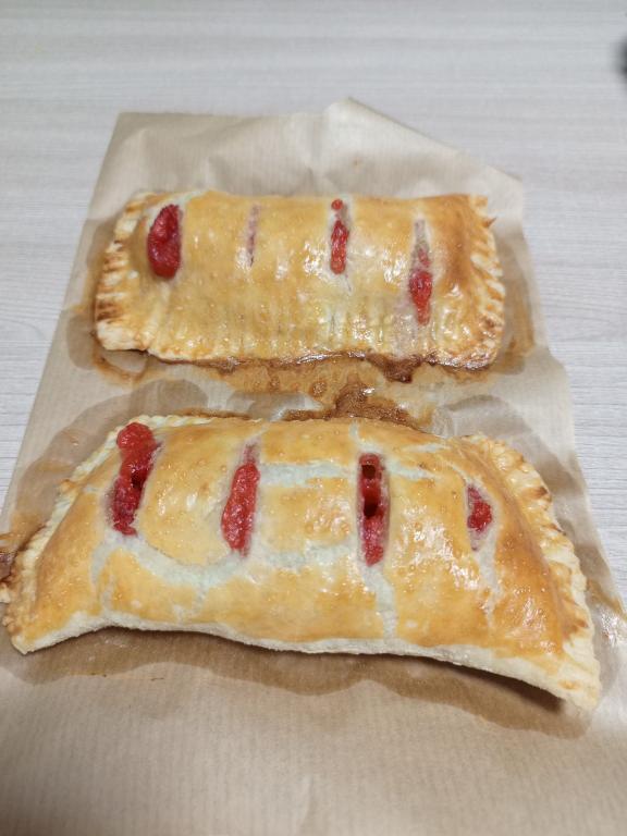 Готовые слойки достать из духовки, дать им немного остыть и можно подавать к столу. Они вкусны и тёплыми, и остывшими. Слойки получаются очень аппетитными и вкусными, а начинка из замороженной клубники делает их сочными и ароматными.
