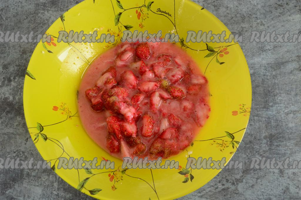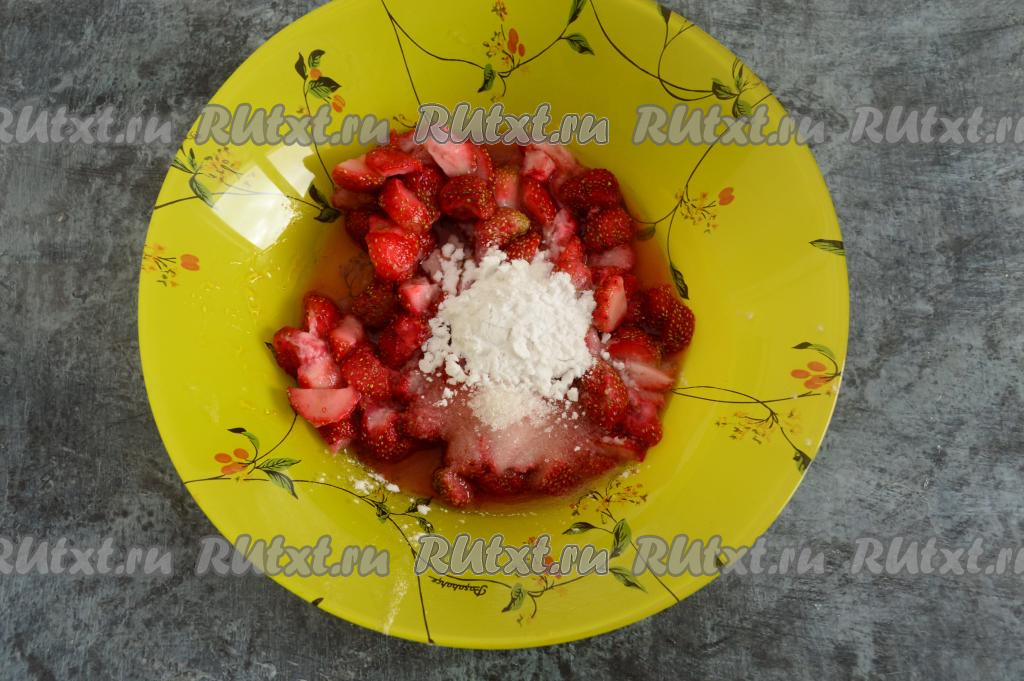 Перемешать клубнику с крахмалом и сахаром.