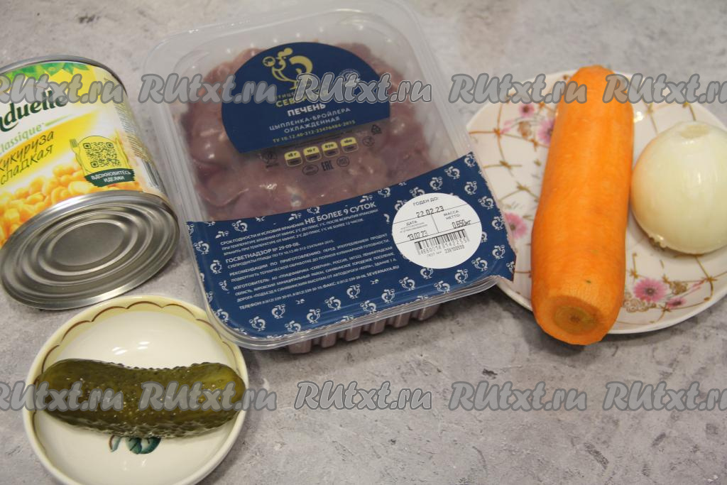 Подготовить продукты. Морковь и лук почистить. Куриную печень промыть водой