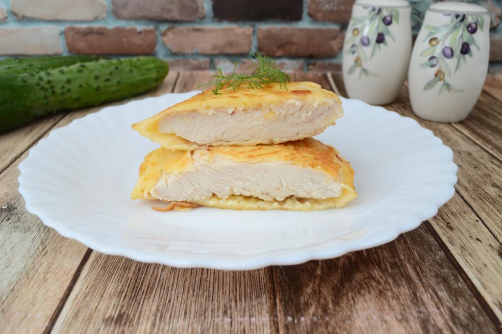 А вот так выглядит наша куриная отбивная в разрезе.