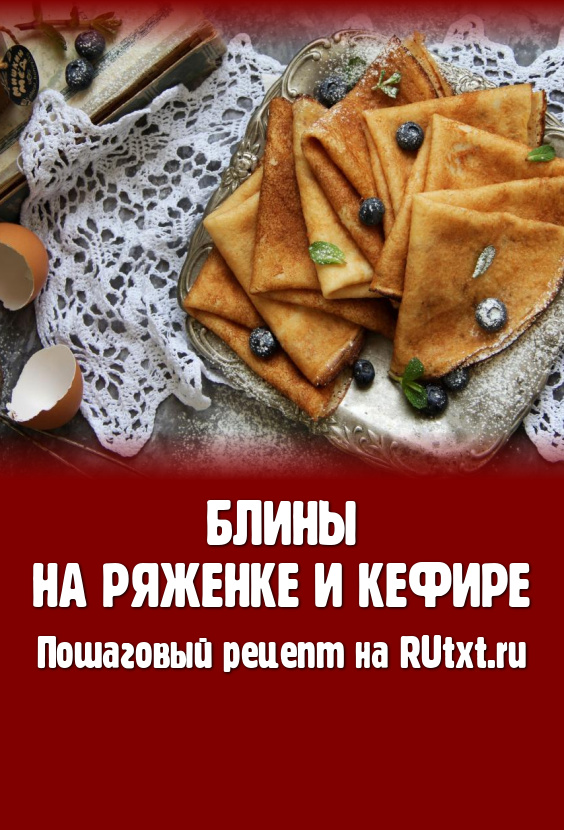 Недавно встретила интересный рецепт блинов, замешанных на ряженке и кефире, решила приготовить. Блины получились очень вкусными, нежными, эластичными и румяными. Блинчики прекрасно переворачиваются в процессе жарки. Подать к столу их можно со сметаной, вареньем или сгущённым молоком, а можно начинить их любой несладкой начинкой.