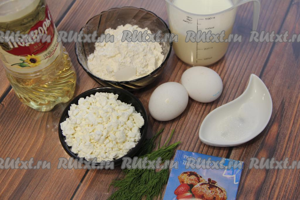 В тесто влить 2 столовых ложки растительного масла, добавить мелко нарезанный укроп (или петрушку), перемешать. Дать творожному тесту "отдохнуть" минут 10.
