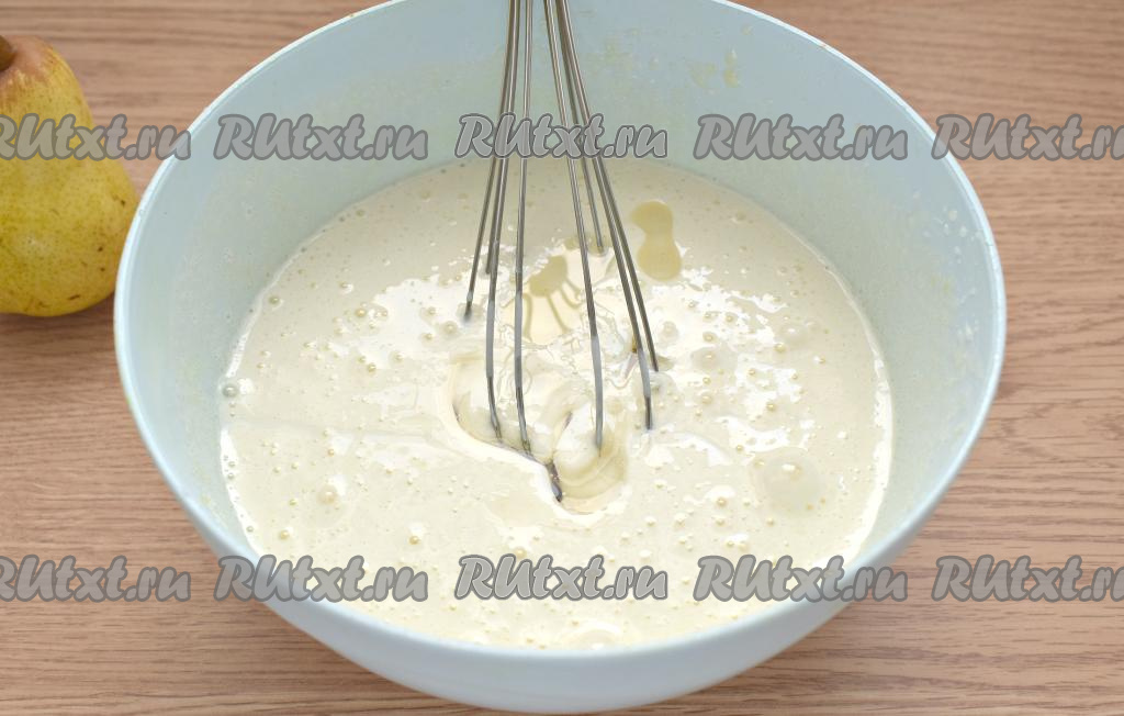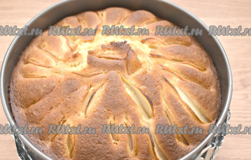 Ставим форму в разогретую до 180 градусов духовку и выпекаем заливной пирог с грушами 50-55 минут. Продолжительность выпечки будет определяться свойствами вашей духовки. Проверить готовность пирога с грушами можно деревянной палочкой (если после прокалывания теста палочка останется чистой, на ней не будет следов теста, значит заливной пирог готов). Если верх начнёт пригорать, но при этом пирог не будет ещё готов, значит накройте выпечку пергаментом и продолжайте печь до готовности.