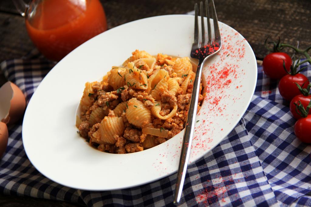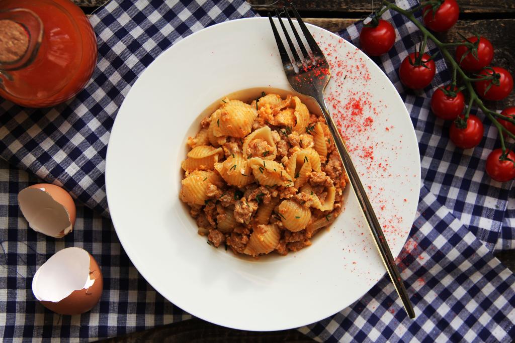Существует немало интересных вариантов приготовления макарон с мясным фаршем. Предлагаю ещё один из удачных рецептов, в котором фарш обжаривается до готовности на сковороде с добавлением сырых яиц, а после этого смешивается с макаронными изделиями. В результате блюдо получается очень вкусным, пикантным, аппетитным и сытным. Макароны, приготовленные с фаршем и яйцом, станут полноценным обедом или ужином. Блюдо готовится быстро и просто. Фарш можно взять любой. Макаронные изделия тоже подойдут любые (я взяла "ракушки", но можно, например, готовить и со спагетти).