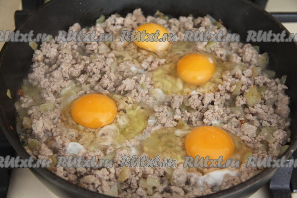 Добавить в сковороду яйца.