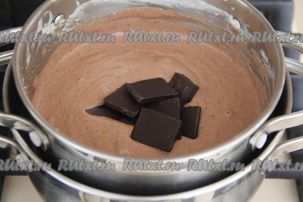 Затем добавить кусочки шоколада.