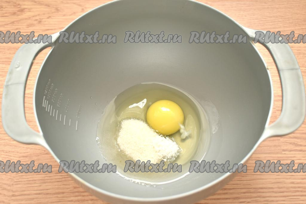 Разбиваем в миску яйцо, всыпаем к нему соль и сахар.