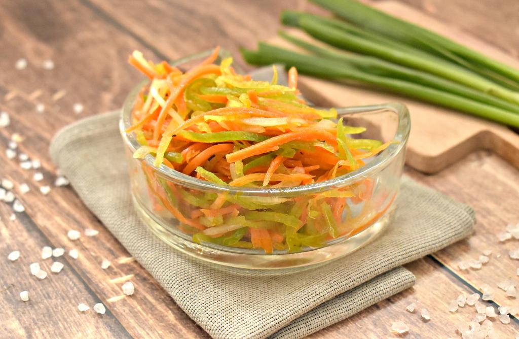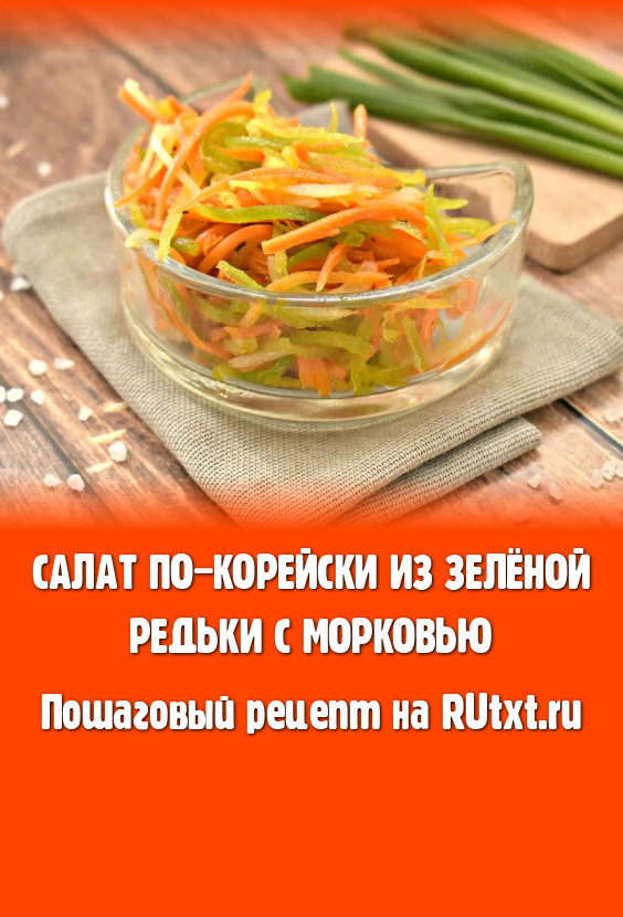 Вкусный, сочный, ароматный салат, приготовленный по-корейски из зелёной редьки и моркови, станет отличным дополнением к различным блюдам.
