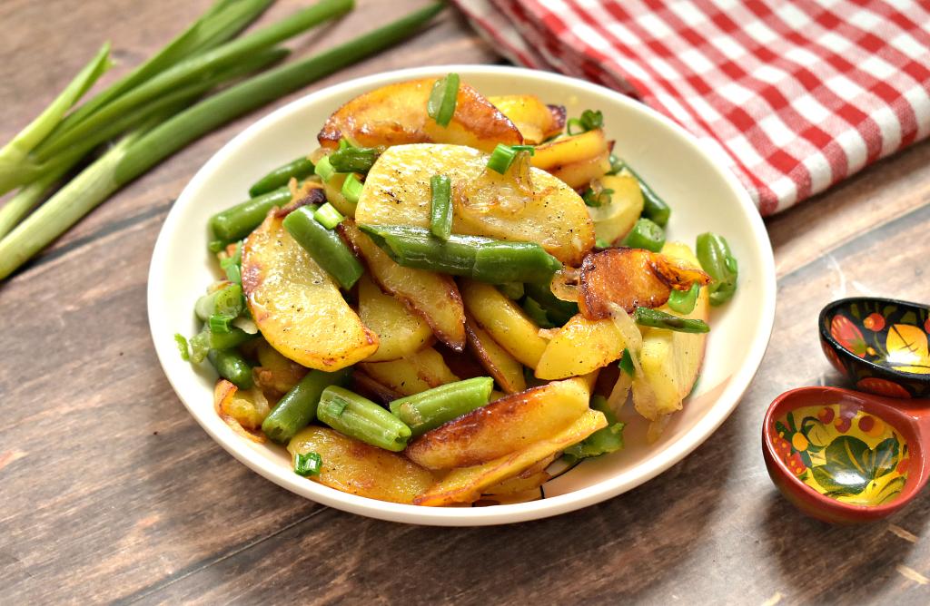 Замороженная стручковая фасоль - отличный продукт для приготовления разнообразных блюд, ведь она удачно сочетается со многими ингредиентами. Сегодня предлагаю пожарить на сковороде картошку и дополнить её стручковой фасолью. Блюдо получается очень вкусным, аппетитным и сытным. Оно станет отличным дополнением к курице или мясу. Ну а в дни Поста его можно подать к столу в качестве основного.