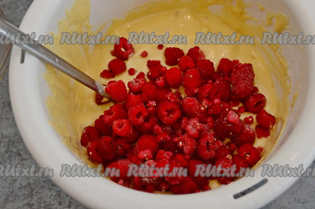 Затем добавить свежую (или замороженную) малину.