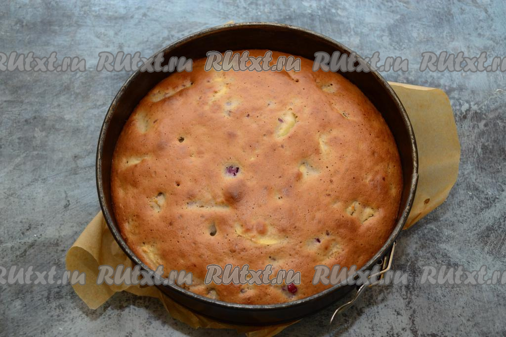 Готовность шарлотки можно определить, проколов её сухой деревянной лучиной (если лучина выходит сухой из теста, значит наша выпечка готова).