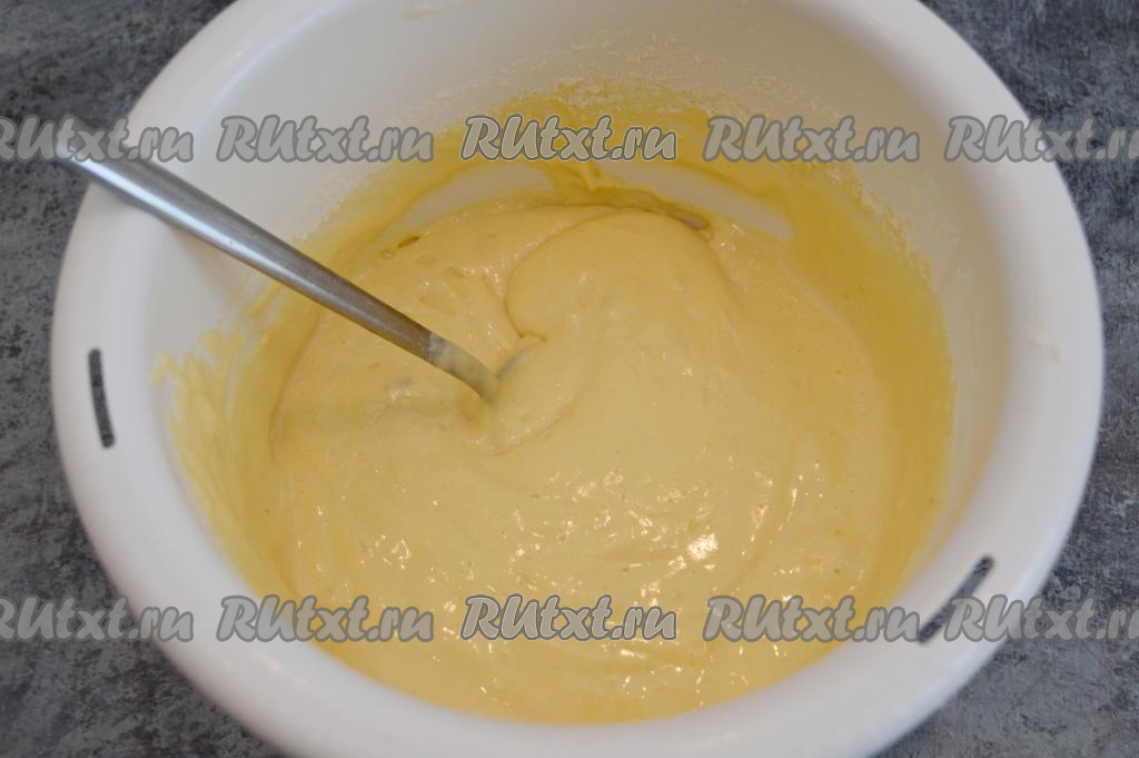 Тесто должно получиться воздушным, однородным, напоминающим средней густоты сметану.