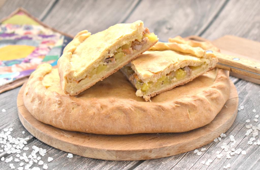 Отправляем курник со свининой и картошкой в разогретую до 180 градусов духовку. Выпекаем пирог 45-50 минут (ориентируйтесь на свойства своей духовки).