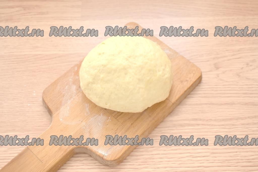 Замешиваем тесто, которое должно быть мягким и слегка прилипать к ладоням. Во время замеса теста возможно понадобится добавить ещё немного муки (я добавила примерно половину стакана). Тесто для курника помещаем в целлофановый пакет и убираем в холодильник на 40-50 минут.