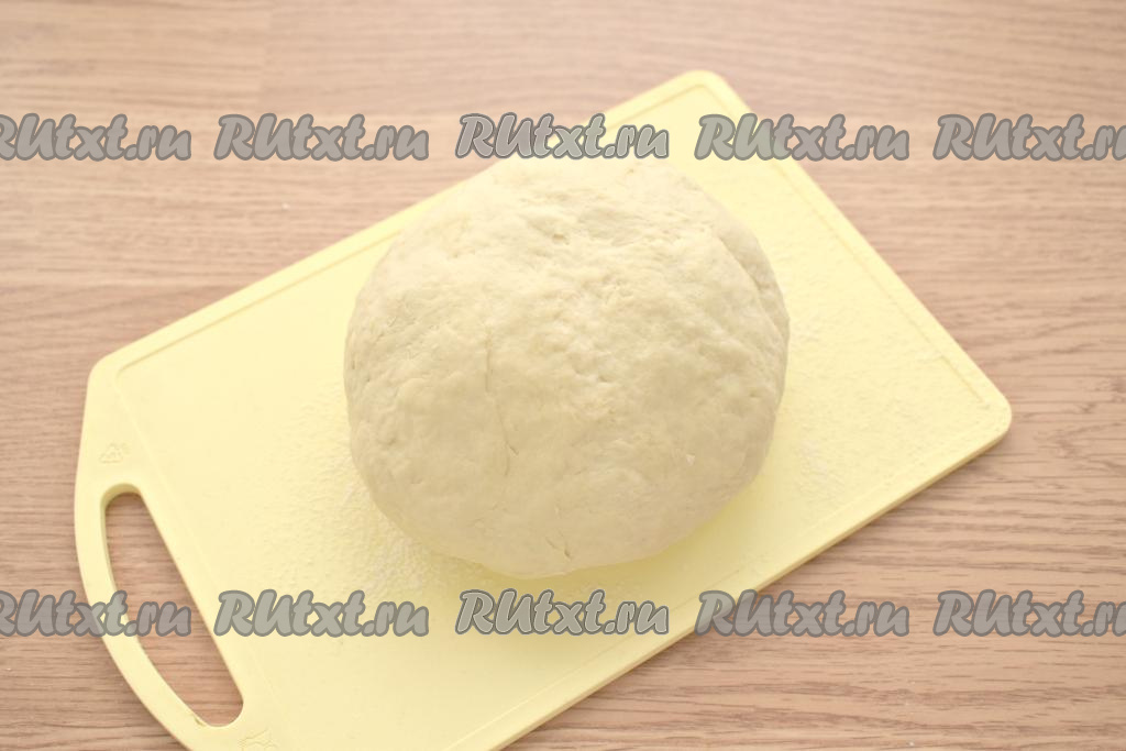 Когда получится мучной комок и перемешивать ингредиенты будет сложно в миске, начинаем вымешивать тесто руками. Возможно, в процессе вымешивания вам потребуется ещё мука (я добавила 2 столовых ложки муки). Количество муки будет зависеть от жирности кефира. Тесто должно получиться мягким, совсем немного прилипать к ладоням, забивать мукой его не нужно. Получившееся тесто перекладываем в миску, накрываем полотенцем и оставляем так минут на 10-15. За это время подготовим начинку.