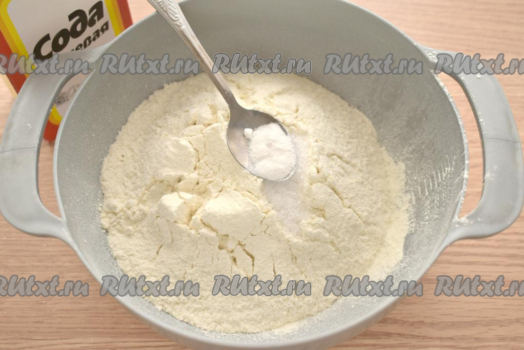 Добавляем в муку 0,5 чайной ложки соли и 0,5 чайной ложки соды.