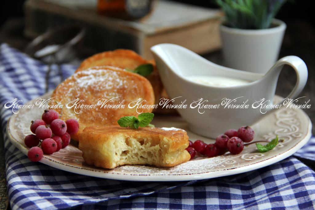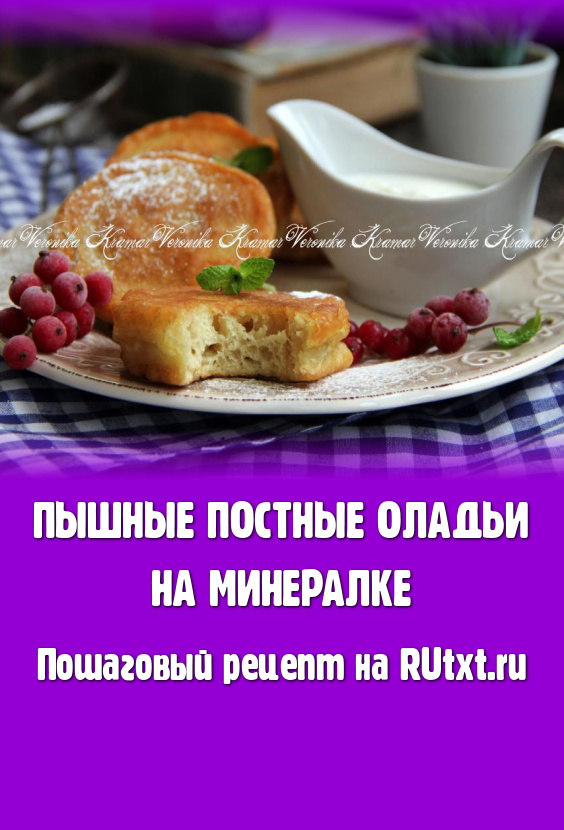 Готовые аппетитные оладьи переложить со сковороды на бумажное полотенце, чтобы удалить излишки масла. Постепенно пожарить все постные оладушки. Пористые, пышные, вкусные оладьи, приготовленные на минералке, подать к столу. В дни Поста эти оладушки можно подать, посыпав сахарной пудрой, ну а в остальные дни сметанка станет отличным дополнением к ним.