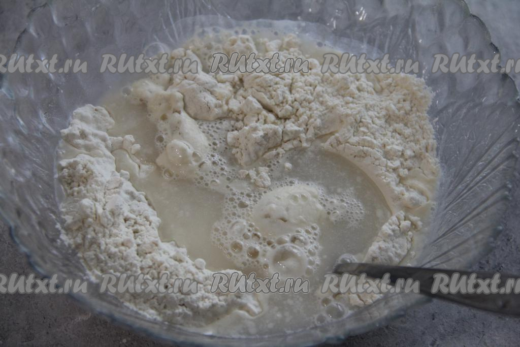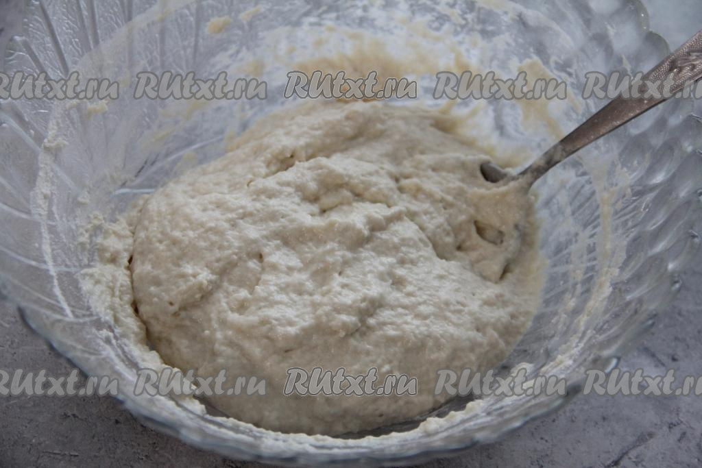 Перемешать тесто ложкой. Тесто для оладий должно получиться в меру густым и вязким, как на фото.