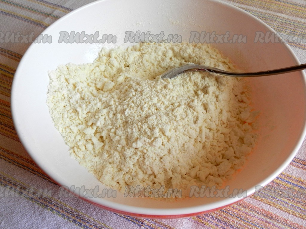 Перемешать все вместе, должна получиться мягкая крошка.