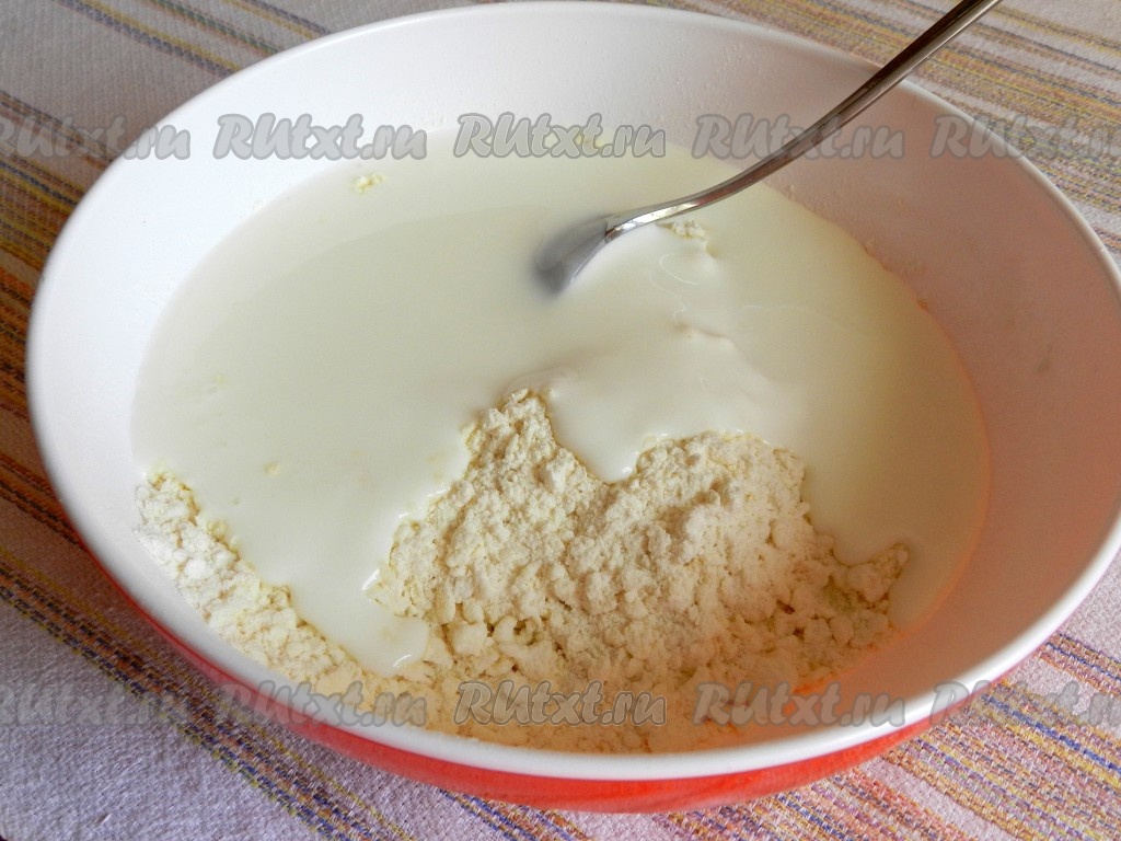Влить в эту смесь кефир.