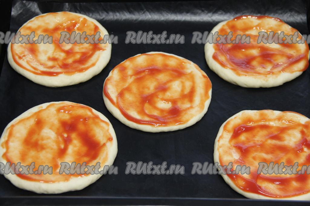 Дать лепёшкам "отдохнуть" минут 10. Затем смазать томатным соусом (или кетчупом).