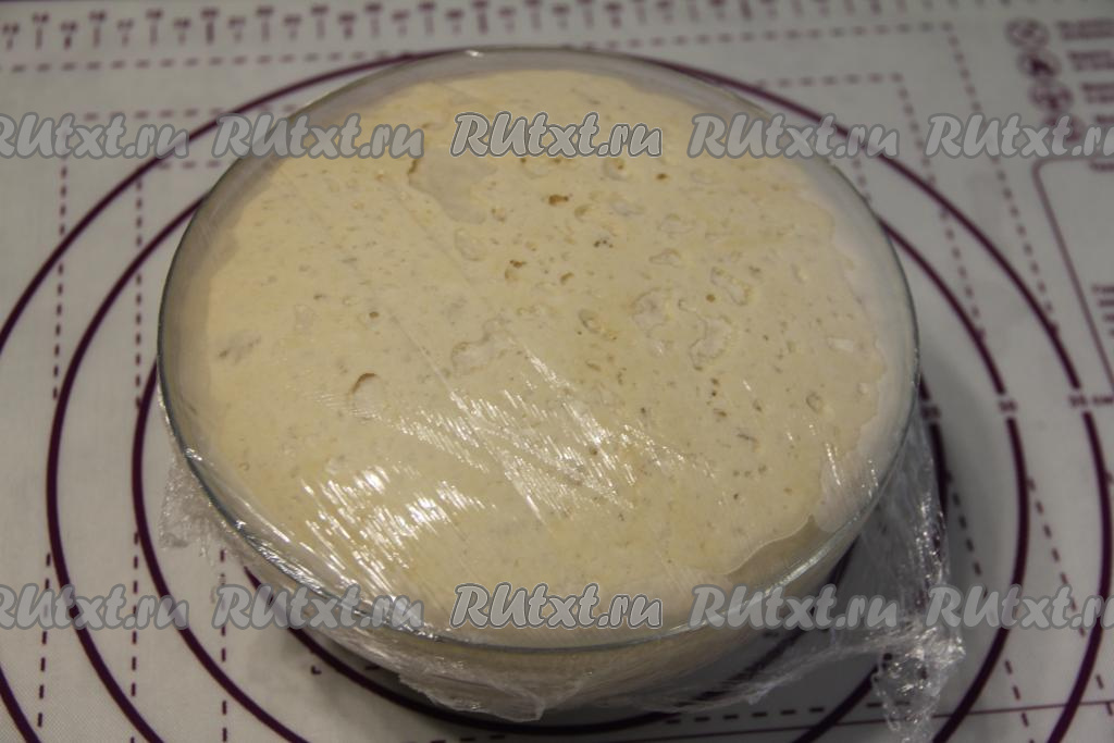 По прошествии часа тесто хорошо поднимется, увеличившись в объёме в 2-3 раза.