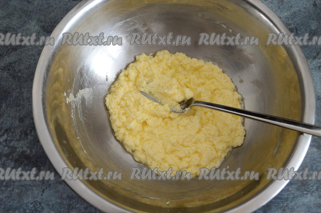 Растереть массу вилкой до однородности.
