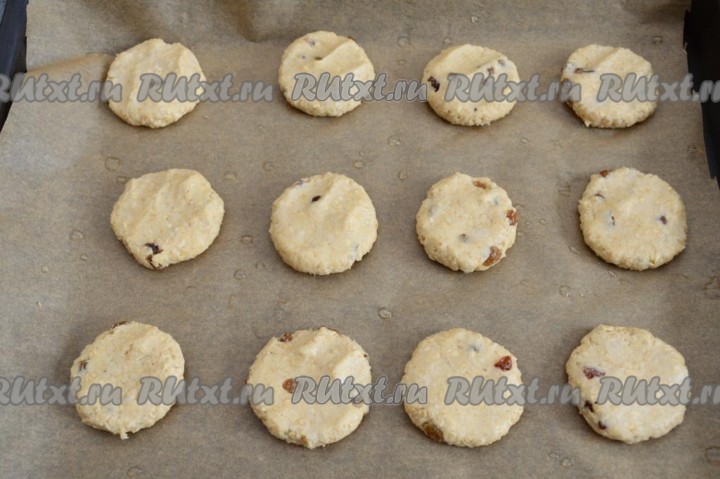 Вмешать изюм в овсяное тесто.