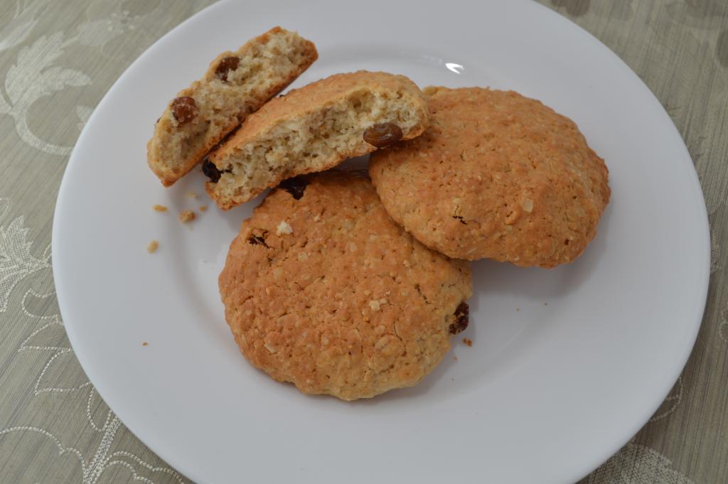 Вот такая тарелка вкуснейшего, аппетитного домашнего овсяного печенья с изюмом получилась у меня.
