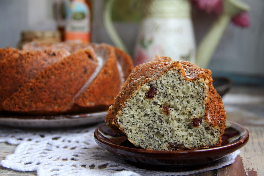 Разрезать кекс на кусочки и подать к столу. Смотрите, какой аппетитный разрез у нашего вкусного кекса с маком, приготовленного в духовке из теста, замешанного на кефире. Угощайтесь!
