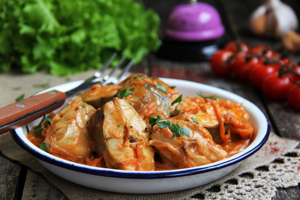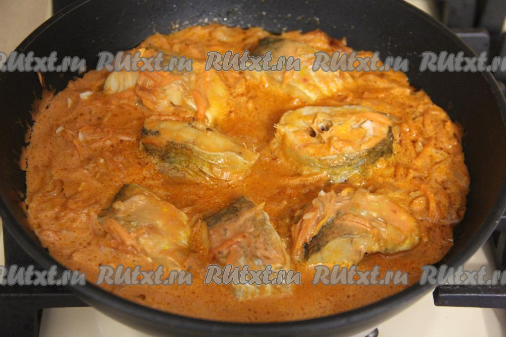 Предлагаю приготовить на сковороде аппетитную, сочную навагу, тушёную с морковью и луком в томатно-сметанном соусе. Рыба получается нежной и вкусной, а, благодаря овощам, ещё и достаточно сытной. Кусочки наваги вместе с овощами и соусом можно подать в столу в качестве основного блюда, а можно дополнить гарниром (например, рисом). Просто, вкусно и сытно, попробуйте!