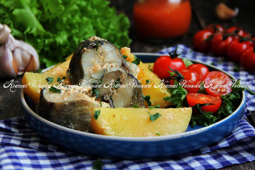 Запекать навагу с картошкой в разогретой духовке минут 30 при температуре 200 градусов.